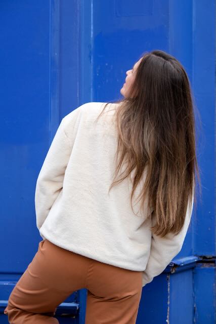 Tu pourras la réaliser dans une fausse fourrure ou un sherpa mais aussi dans des tissus moins épais comme un jacquard.