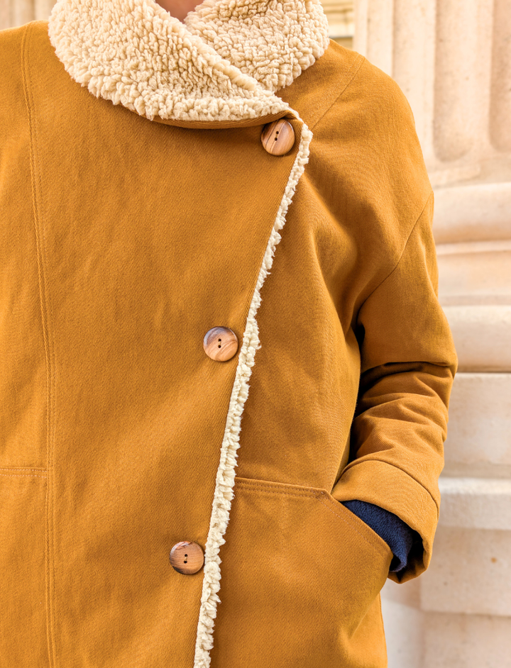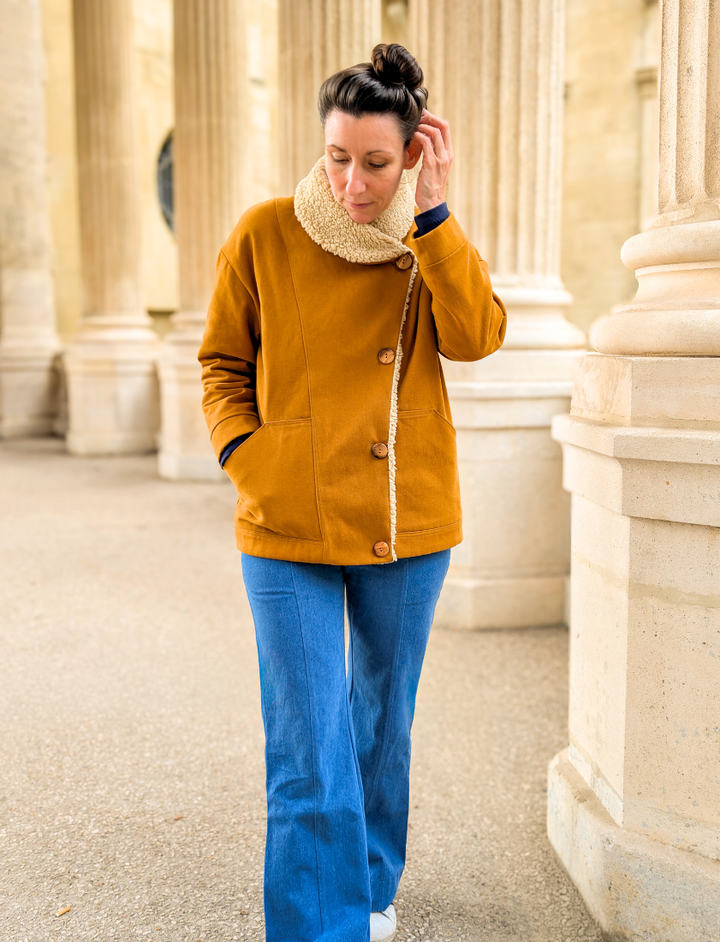 Sa coupe droite, son volume généreux et son col tout en rondeur en font une pièce aussi confortable que moderne. Et malgré son allure travaillée, Moon reste accessible et agréable à coudre.
