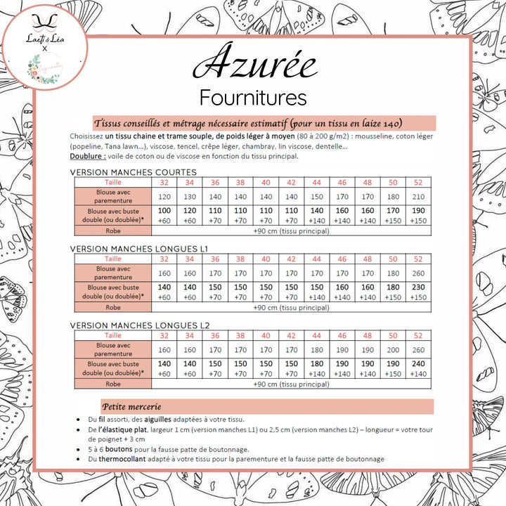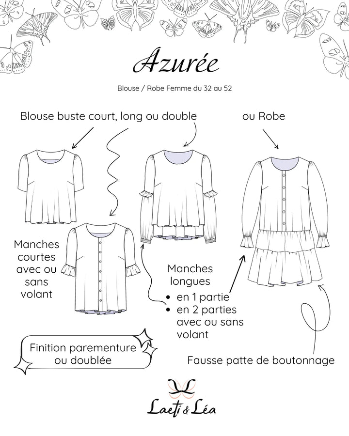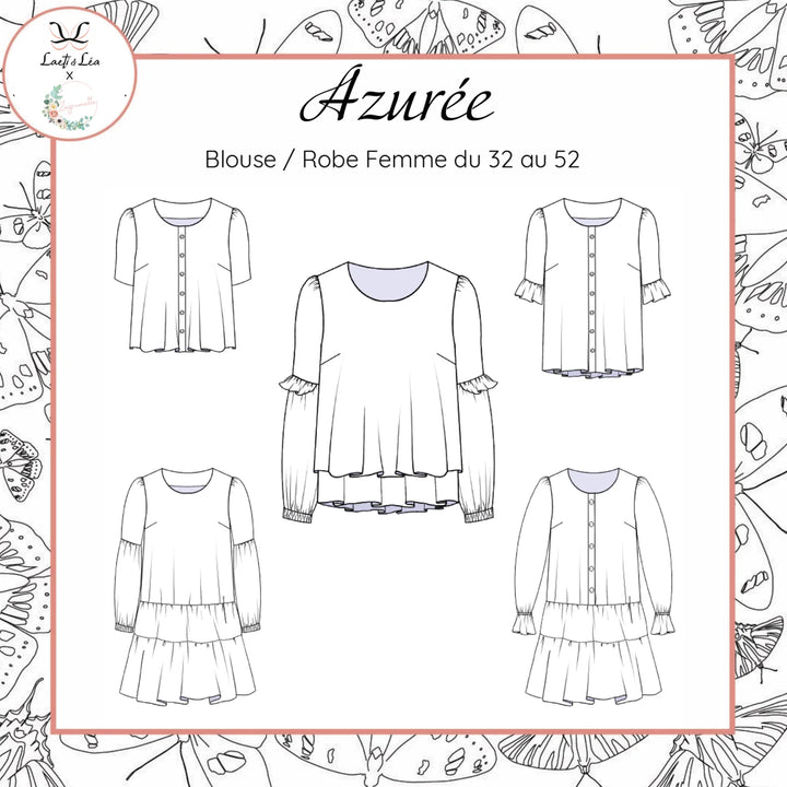 PDF - patron digital du pack blouse et robe Azurée de Laeti et Léa du 32 au 52 (Fr)