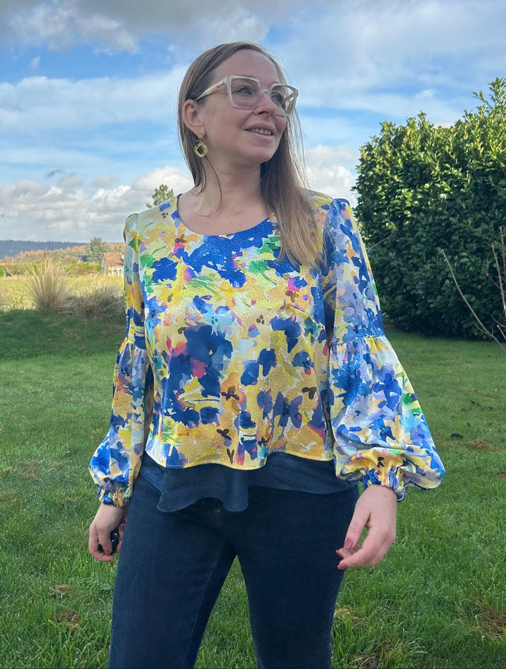 Accessible aux débutants, cette blouse féminine et fluide se distingue par sa coupe évasée et son buste à pinces poitrine qui apportent confort et élégance. Son encolure ronde dégagée intemporelle flatte toutes les morphologies et s’adapte à toutes les saisons.