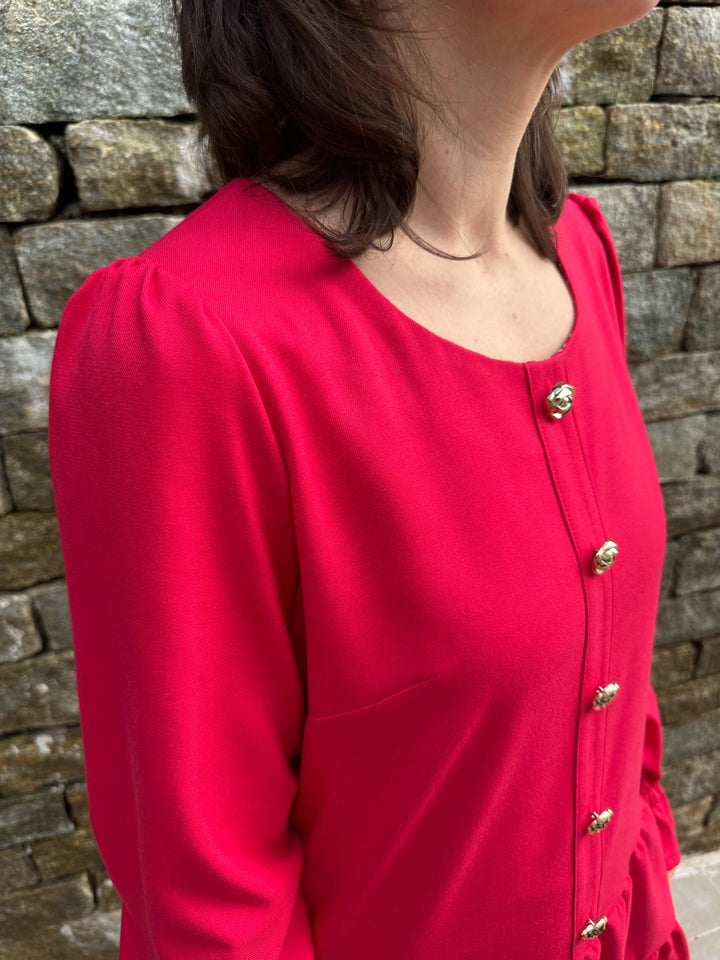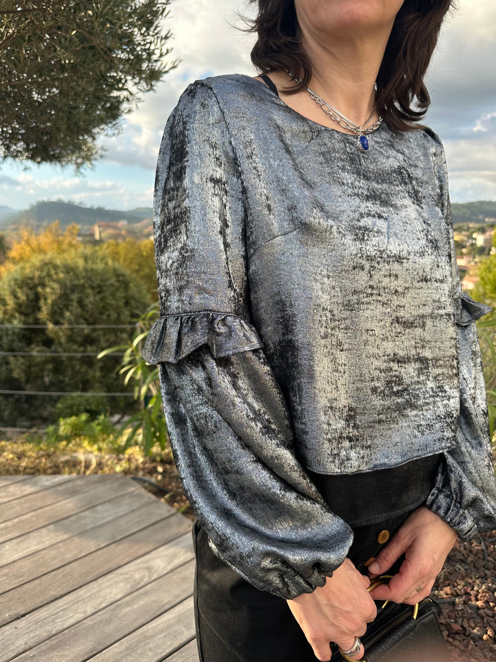 - Manche longue volantée, tout en légèreté grâce à un élastique inséré dans une coulisse qui forme un joli volume au poignet.