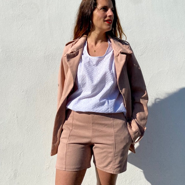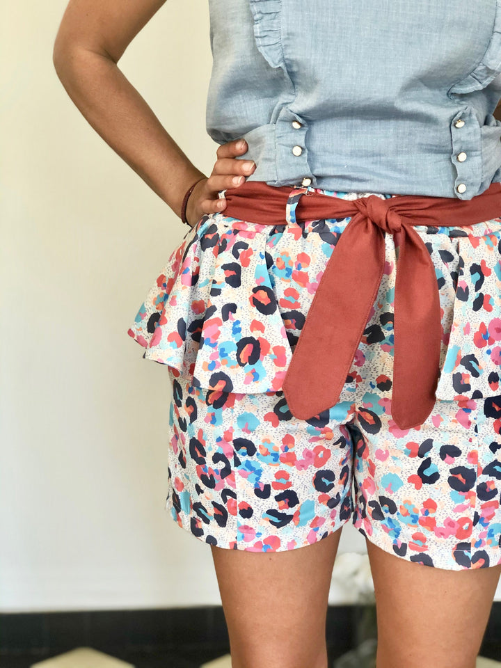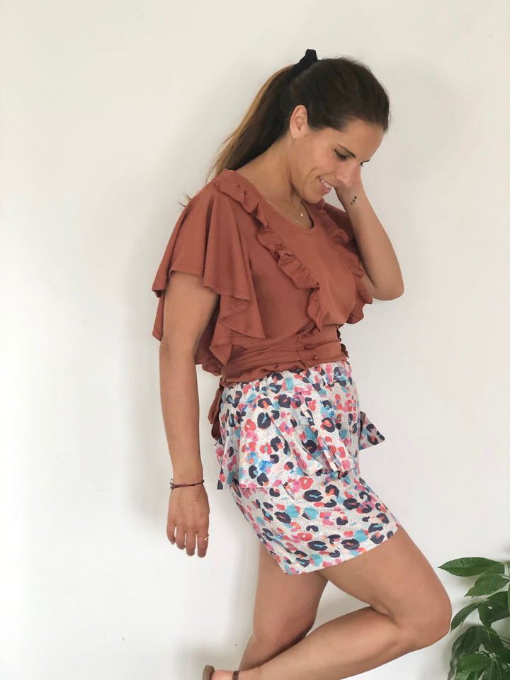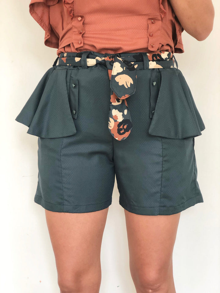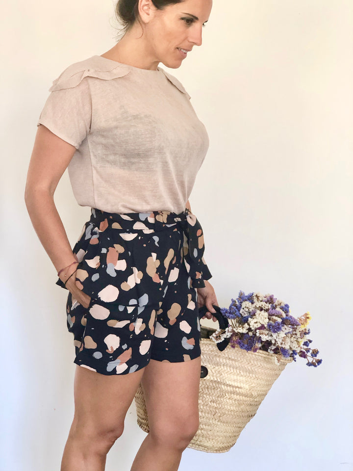 Le patron du short APRIL propose une version simple et une autre avec des volants sur les hanches.