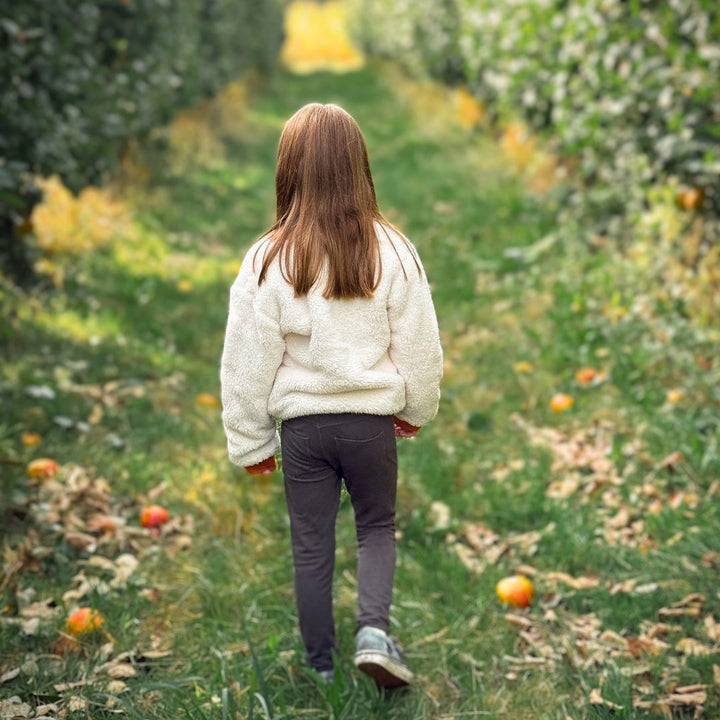 Ibis est un bombers ample au niveau du buste mais plus près du corps au niveau des hanches, toutefois le bord-côte permet de s’ajuster à la morphologie de chacun. Utilisez le tableau des mesures du vêtement fini pour vous aider dans le choix de la taille en fonction du rendu souhaité en comparant aux mesures des gilets de l’enfant.