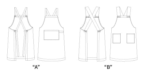 The "A" version features a large central pocket, a side strap for hanging items, and two long, thin straps that cross behind and can be tied in the back or front.