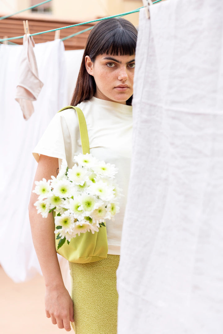 Ideal fabrics need some body, such as denim, jacquard, corduroy, cotton canvas, twill, seersucker, heavy linen, nylon, etc. For the lining, you can use a finer fabric like cotton poplin, viscose or polyester satin, or similar.
