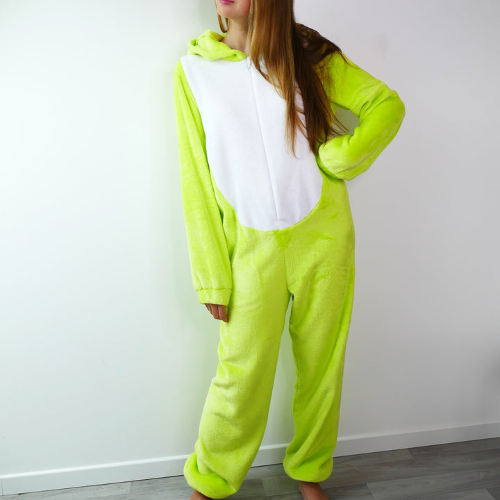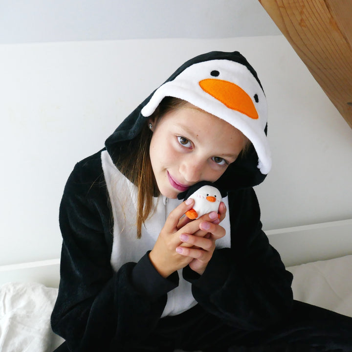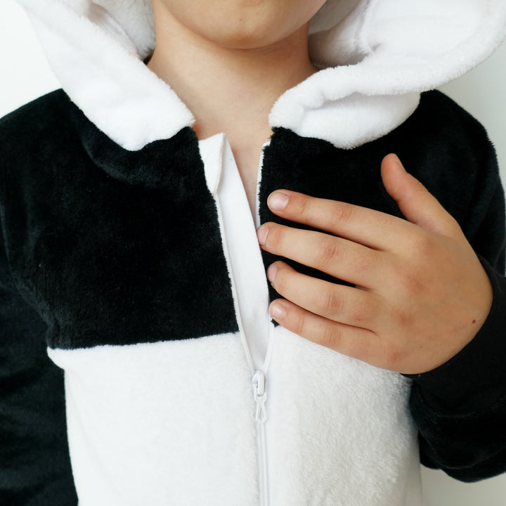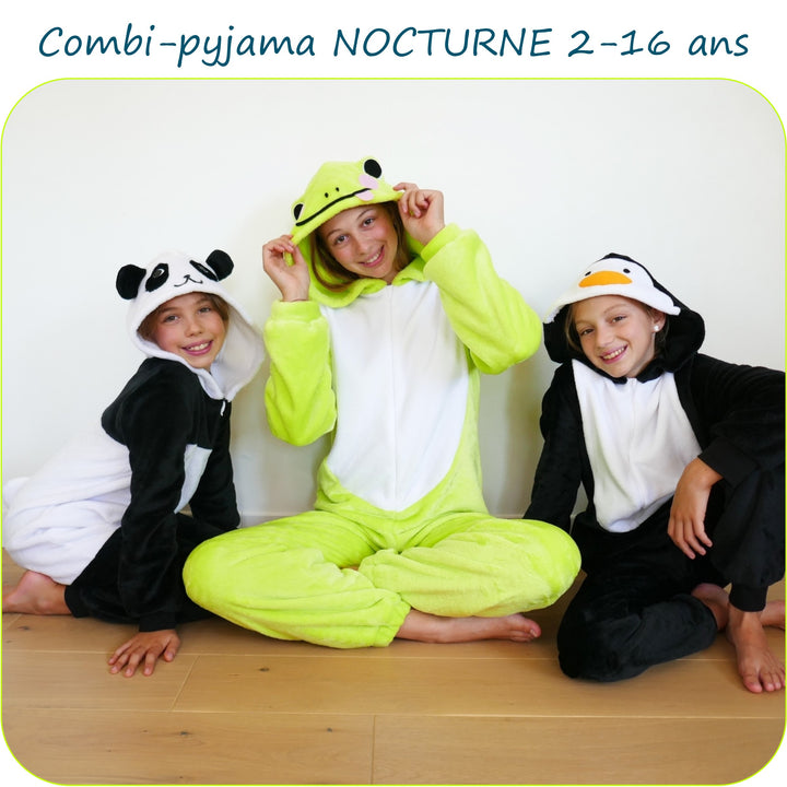 Ce patron de combi-pyjama peut se coudre en version panda, pingouin, grenouille ou avec un seul tissu, sans empiècements. Dans ce cas vous pouvez choisir un tissu uni, à motifs animaux (par exemple pour coudre une version léopard, zèbre ou encore dalmatien) ou tout autre tissu à motifs !