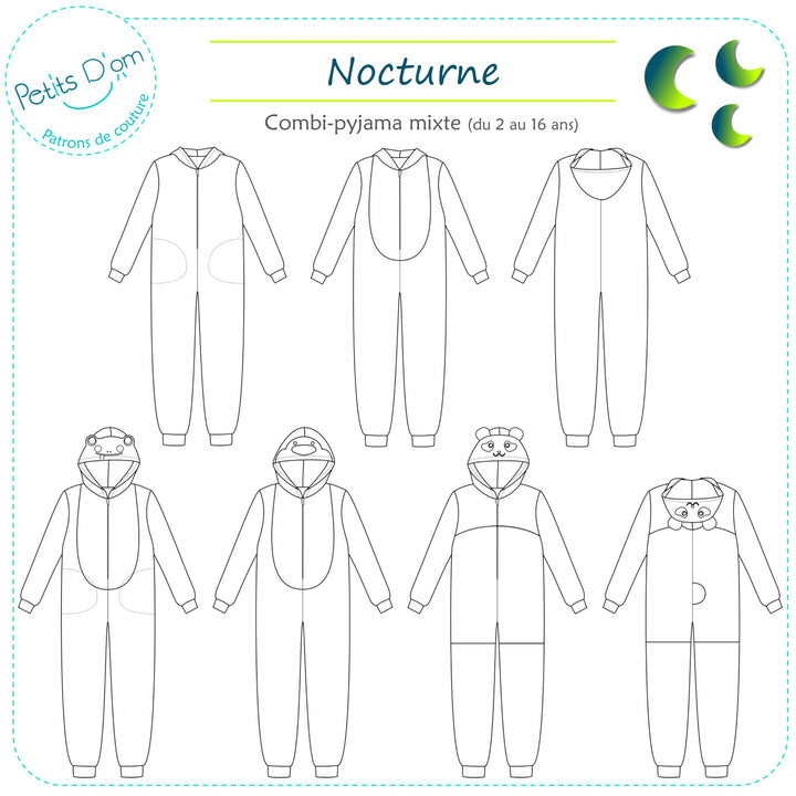 PDF - patron digital NOCTURNE combi-pyjama pour fille ou garçon du 2 au 16 ansFr)