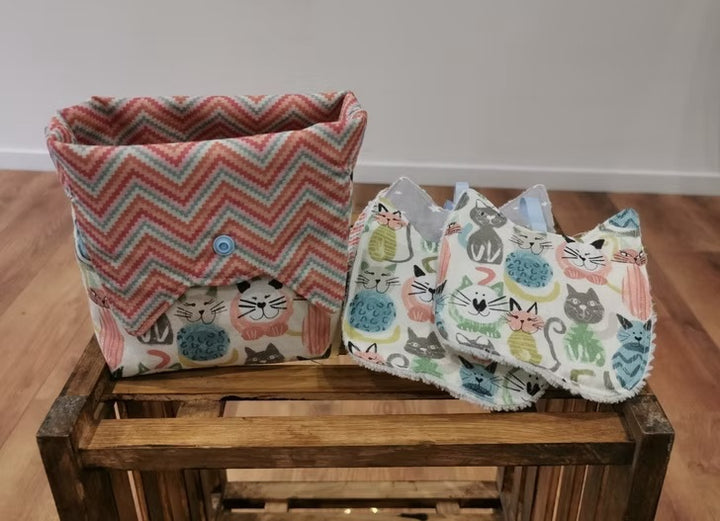 PDF - Patron digital panière refermable et ses lingettes en forme de chat de ValMa Créas (fr)