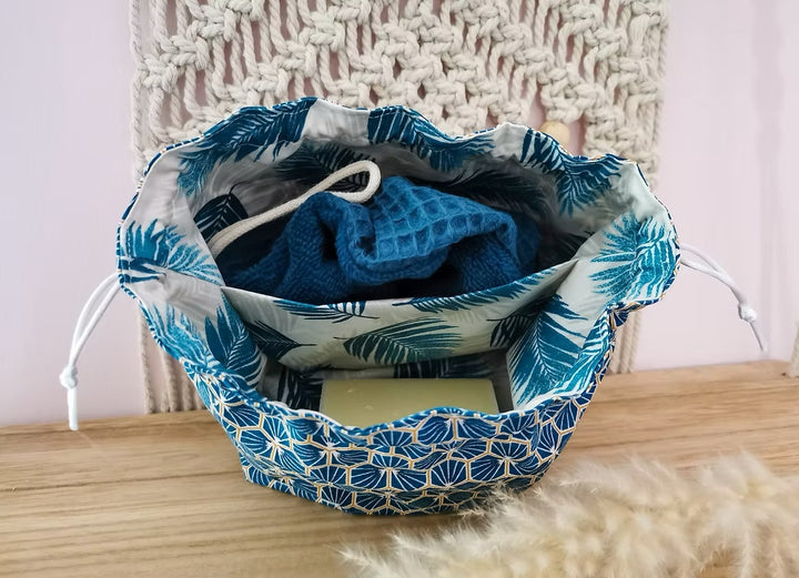 Tissu en coton enduit : imperméable et idéal pour ranger vos accessoires de toilette.