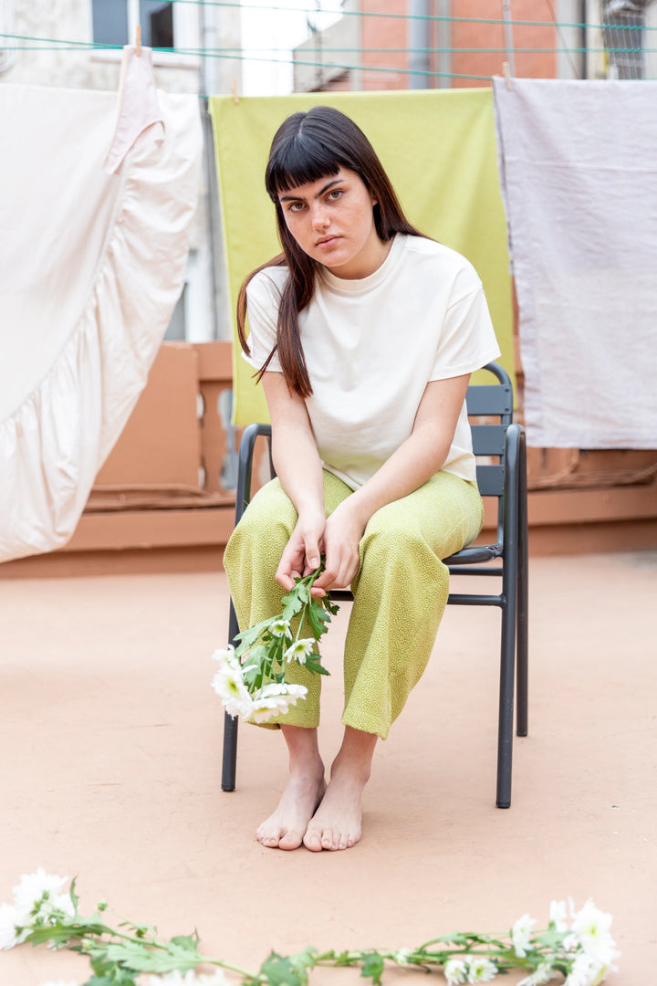 For the T-shirt: cotton jersey, interlock knit, rayon jersey, etc.