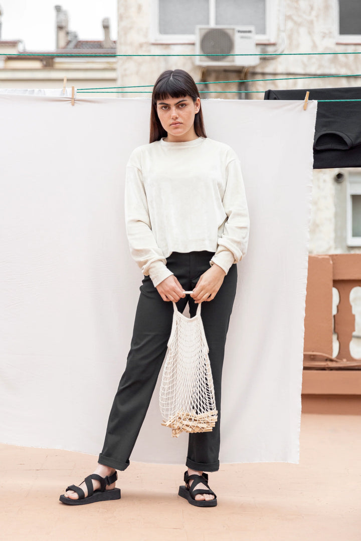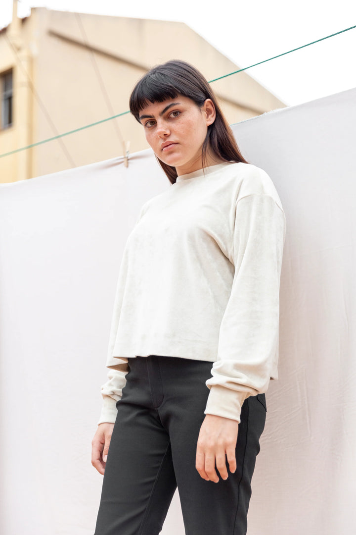 For this model you will need a medium-weight knit fabric, such as: Jersey, French Terry, fleece, Roman knit, velour, among others.