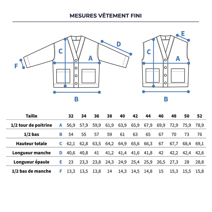 - Veste : denim, gabardine, canvas, jacquard, matelassé moyen, velours côtelé, lin, drap de laine.