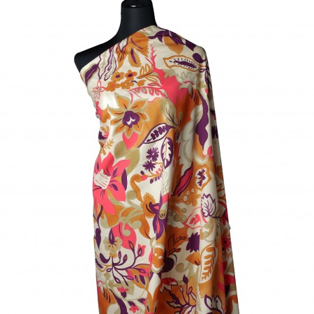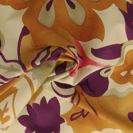 Popeline 100% coton "Fleurs indiennes" (prix pour 10cm)