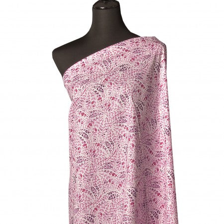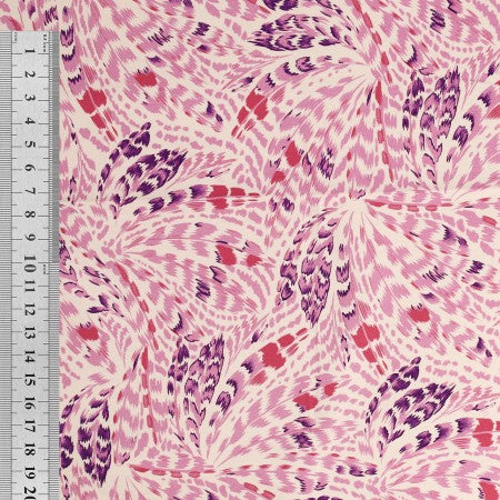 Popeline 100% coton "Plumes rose/parme" (prix pour 10cm)