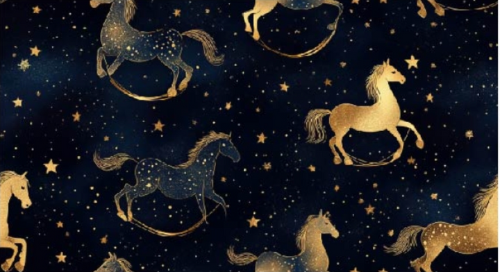 Popeline "Cheval à bascule noir" certifié oeko-tex - 100% coton (prix pour 10cm)