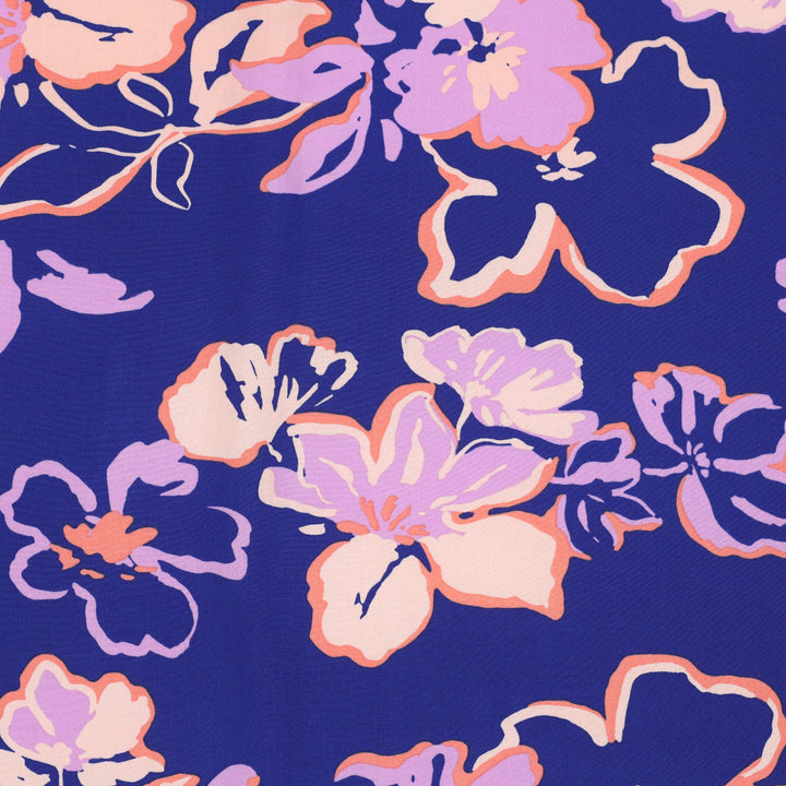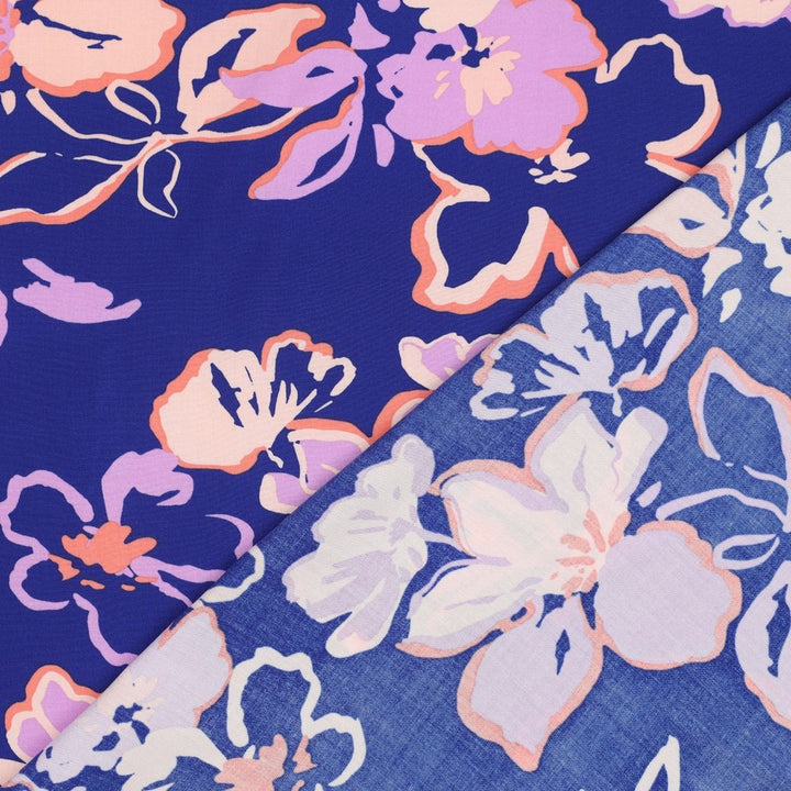 Popeline de viscose "Bouquets fleuris sur fond bleu" - certifié Eco-Vero(Prix pour 10cm)