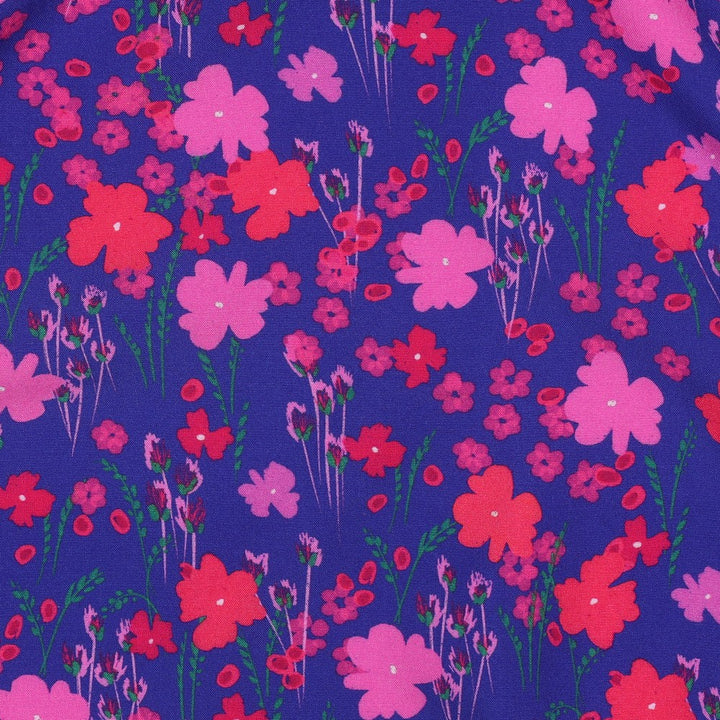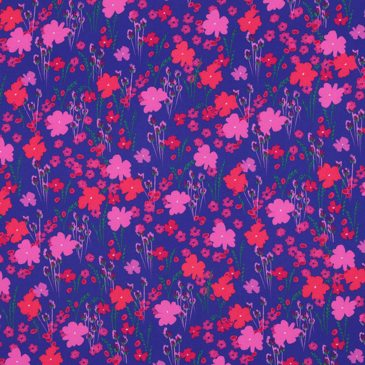 Popeline de viscose " Prairie fleurie sur fond bleu" - certifié Eco-Vero(Prix pour 10cm)