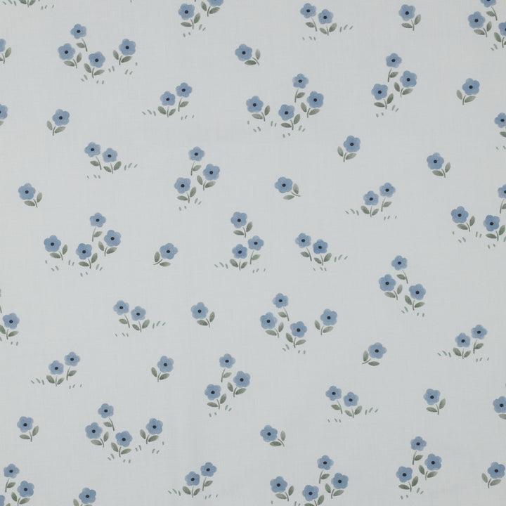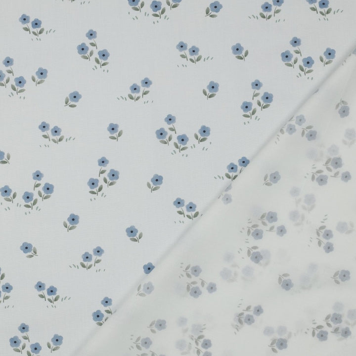 Popeline "Fleurs bleu naïves" sur fond blanc - Oeko-tex (prix pour 10cm)