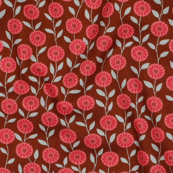 Popeline Guirlandes fleuries caramel - Oeko-tex (prix pour 10cm)