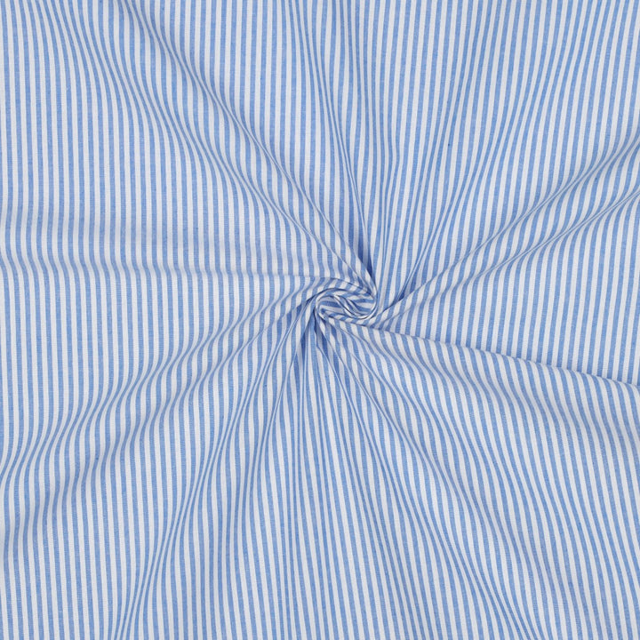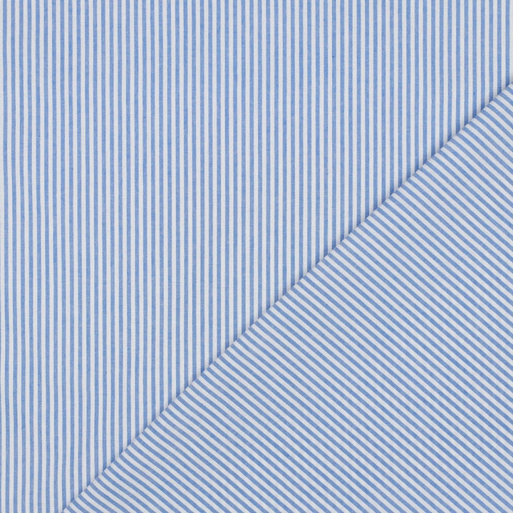 Très jolie popeline 100% coton au motif rayé blanc et bleu.