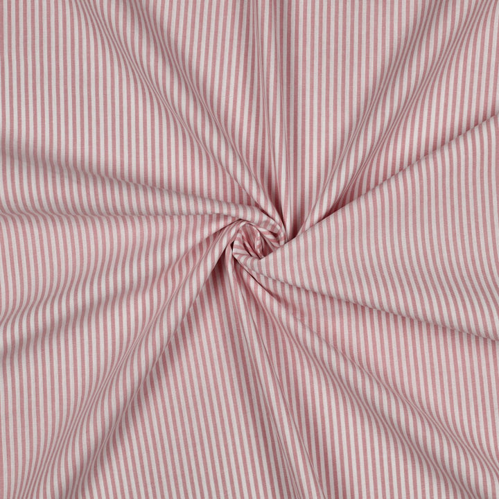 Très jolie popeline 100% coton au motif rayé blanc et rose.