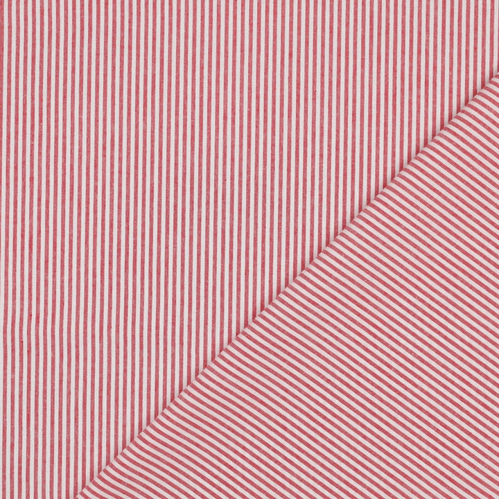 Très jolie popeline 100% coton au motif rayé blanc et rouge.