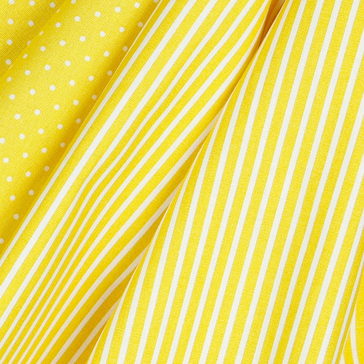 Très jolie popeline 100% coton au motif rayé blanc et jaune.
