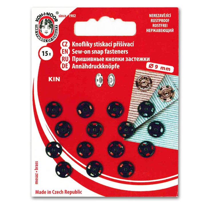 Pressions à coudre - 9mm (prix pour 1 plaques de 15 pressions) noir
