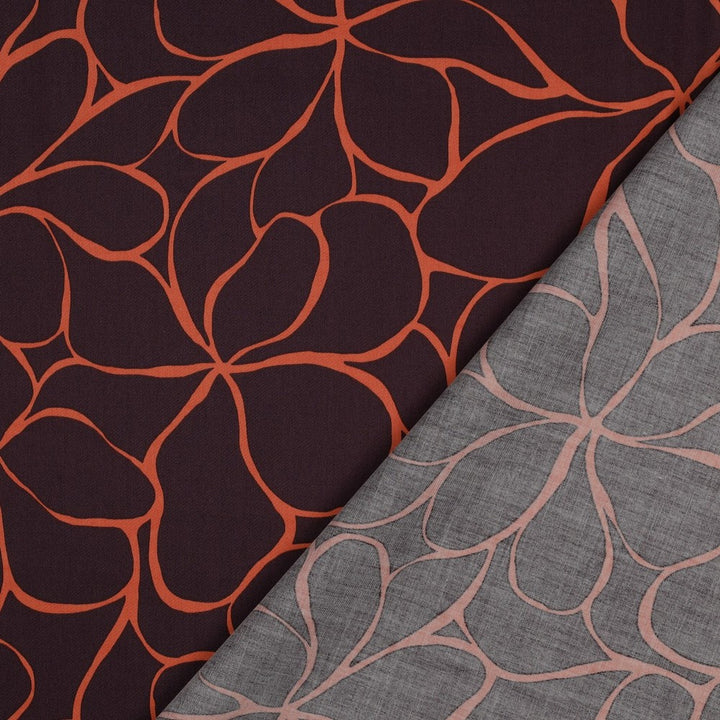 Satin de coton "Fleurs graphiques chocolat/orangé" oeko-tex (prix pour 10cm)
