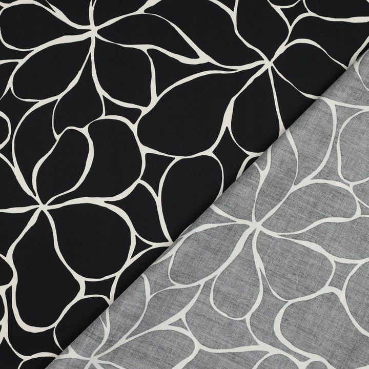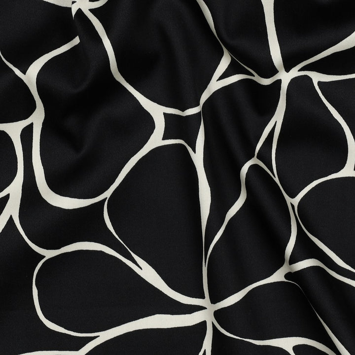 Satin de coton "Fleurs graphiques noir/blanc" oeko-tex (prix pour 10cm)