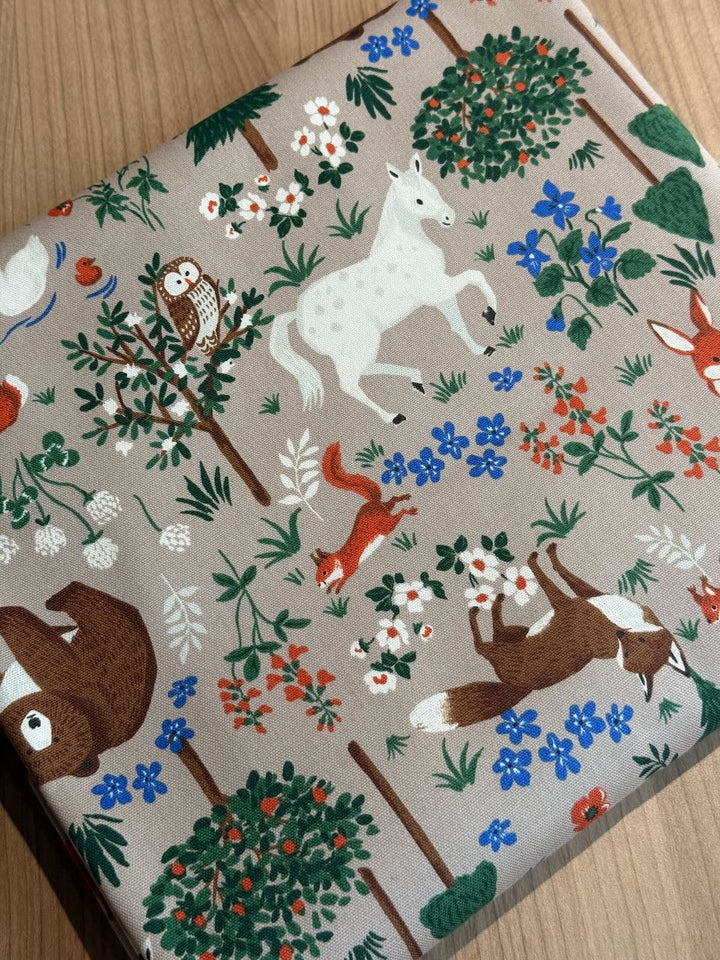 Très jolie popeline tissé fin au motif d'animaux de la forêt