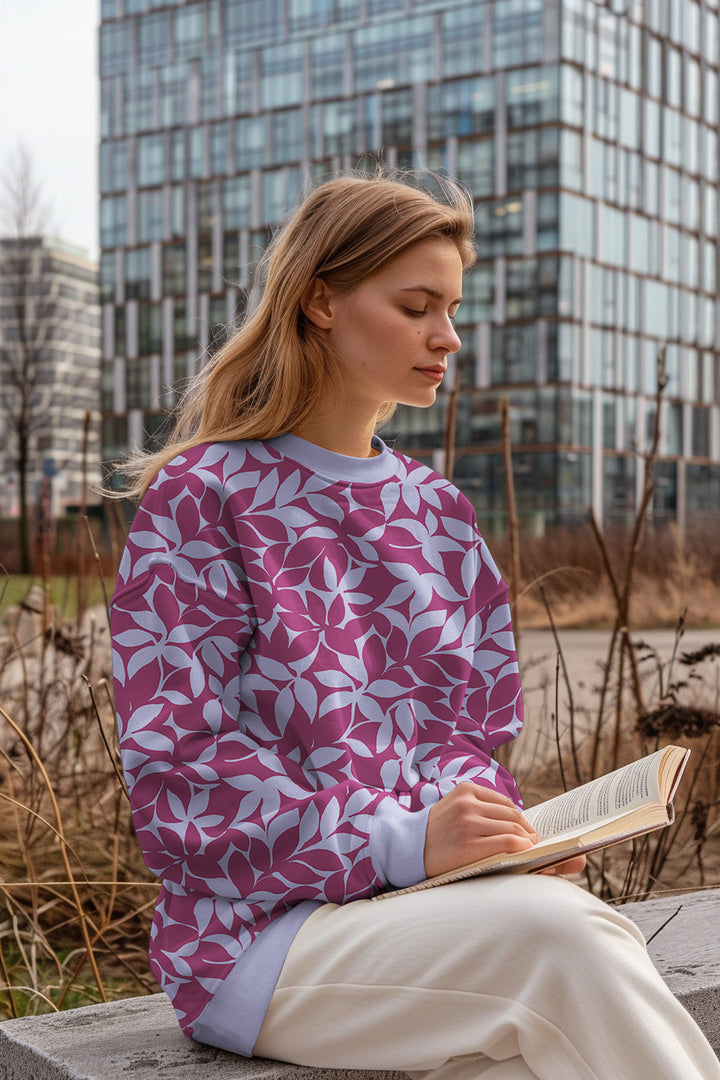 Sweat - "feuillage pourpre/mauve"- certifié oeko-tex (prix pour 10cm)