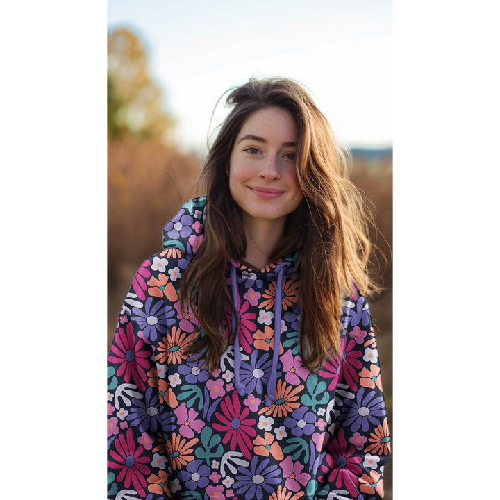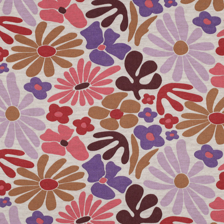 Ce sweat au motif de fleurs rappelant les années 70 sera parfait pour la réalisation de vos vêtements extensibles en mailles et en particulier de jolis sweat shirt, pyjama, hoodies, robes...
