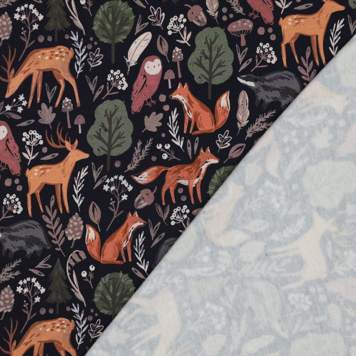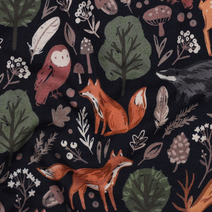 Ce sweat au motif d'animaux de la forêt sera parfait pour la réalisation de vos vêtements extensibles en mailles et en particulier de jolis sweat shirt, pyjama, hoodies, robes...