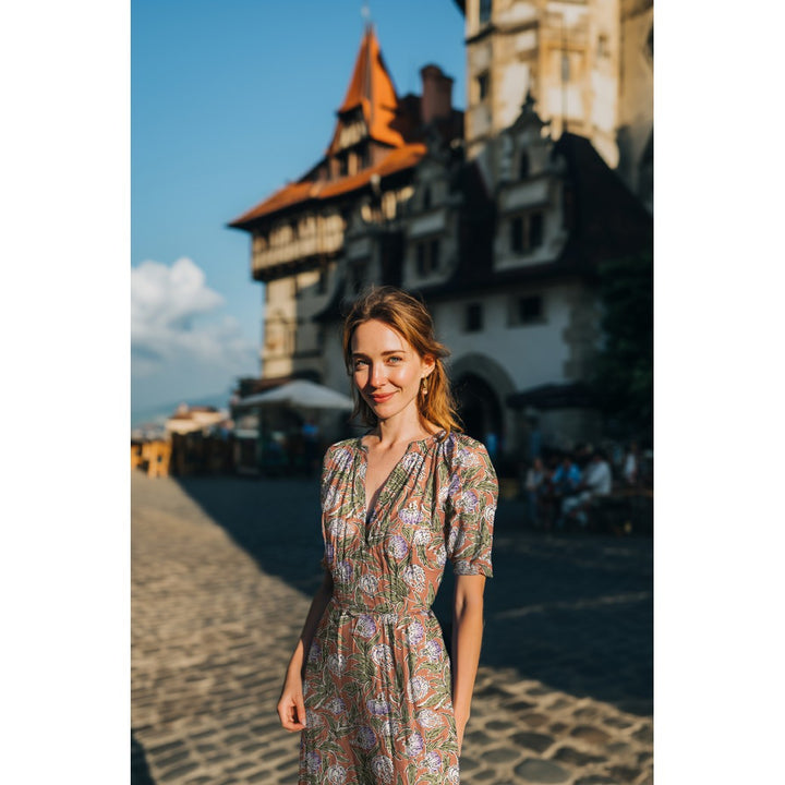 Ce tissu unique est créé selon la technique ancestrale de l'impression au bloc, où des artisans qualifiés sculptent à la main des blocs de bois pour y imprimer des motifs complexes. Chaque couleur est appliquée avec un bloc différent, selon un processus minutieux et rythmé, créant ainsi un magnifique effet de superposition. Chaque pièce étant entièrement réalisée à la main, il n'existe pas deux mètres identiques. De légères variations de couleur, de tissage, de couture et d'impression témoignent d'un savoir-faire authentique et d'une tradition bien ancrée.