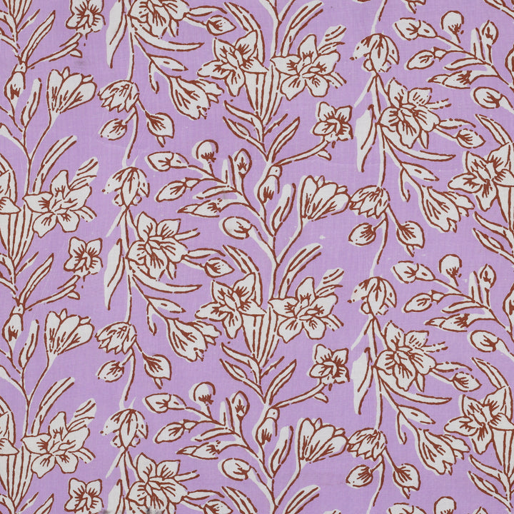 Tissu popeline 100% coton - Block-printed - Fleurs lilas (prix pour 10cm)