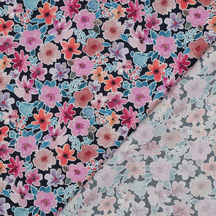 Cette jolie popeline de coton fleurie sera parfaite pour la confection de jupe, top, chemisier, robe romantiques ou pourquoi pas pour les accessoires?