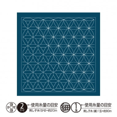 Toile Hana-Fukin Hanaguruma pour la réalisation de broderie Sashiko sur fond indigo (prix pour le coupon de 33cmX33cm)