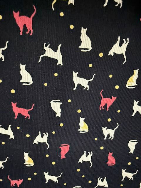 La couleur du fond met bien en valeur les chats. Il est juste sublime et sera parfait pour coudre des pantalons, vestes, robes tant pour la confection adulte qu'enfant.