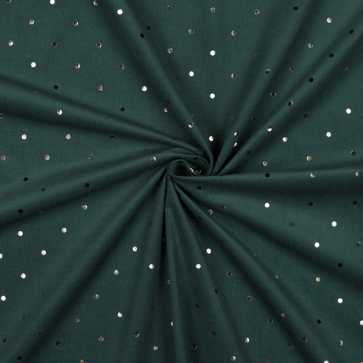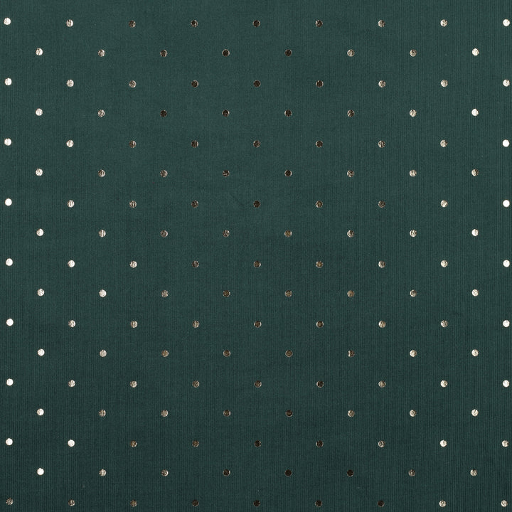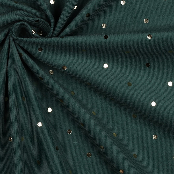 Velours milleraies lavé à pois doré (foil) vert forêt - 100% coton - Oeko-tex (Prix pour 10cm)