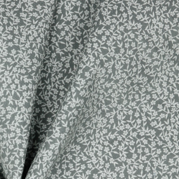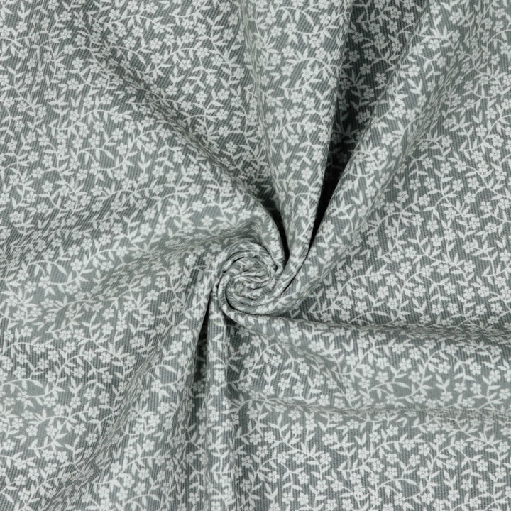 Velours milleraies "mini fleur sur fond gris" - Oeko-tex (Prix pour 10cm)
