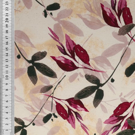 Très jolie viscose au motif de feuillage. Les tons sont très doux.