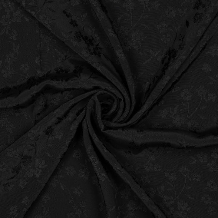 Viscose jacquard "flower" noir (Prix pour 10cm)