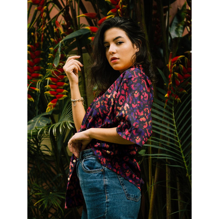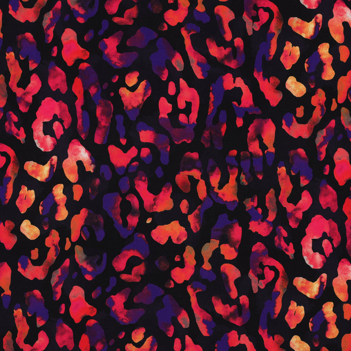 Viscose léopard couleurs vives sur fond noir certifiée oeko-tex (Prix pour 10cm)