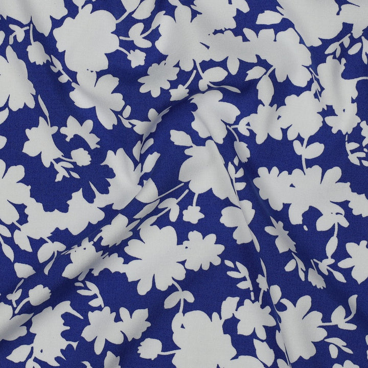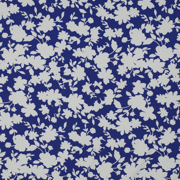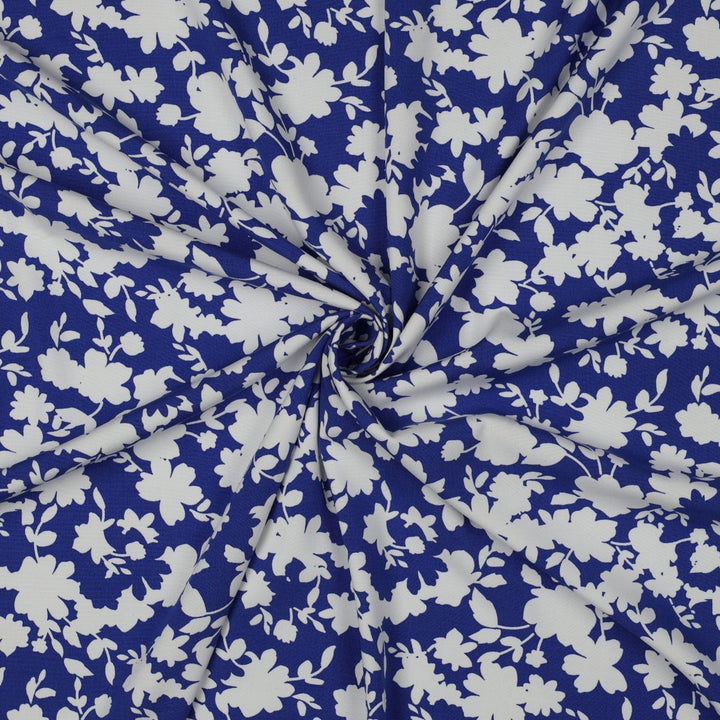 Viscose stretch "Pluie de fleurs sur fond bleu cobalt" (Prix pour 10cm)