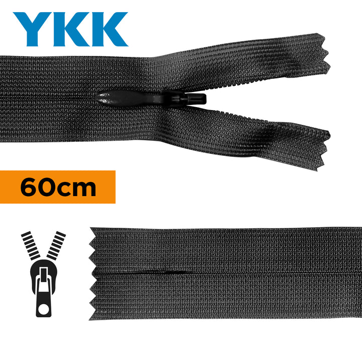 YKK - zip invisible de 60cm - couleur noir 580 (prix à la pièce)