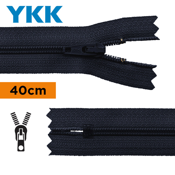 YKK - zip non séparable 40cm - couleur bleu marine 058 (prix à la pièce)